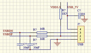 为了以后开发USB功能先将USB口设置出来,接口电路如图3所示。