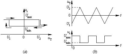 图7-22 电压比较器的迟滞特性和输入、输出波形