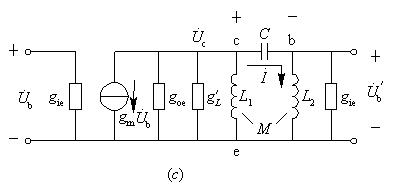 (a) 实际电路; (b) 交流等效电路; (c) 高频等效电路