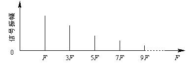 对于周期性信号, 可以表示为许多离散的频率分量(各分量间成谐频关系), 例如图 1 — 3即为图 1 — 2所示信号的频谱图; 对于非周期性信号, 可以用傅里叶变换的方法分解为连续谱, 信号为连续谱的积分。
