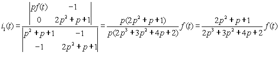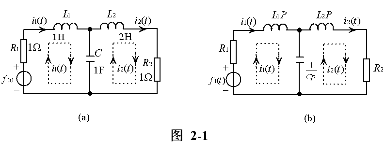 用行列式法从式(2-2)中可求得响应i1(t)为 | |||
