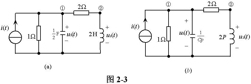 例2-1 图2-3(a)所示电路。求响应u1(t),u2(t)对激励 | |||
