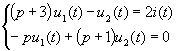 解 其算子形式的电路如图2-3(b)所示。对节点①,②列算子形式的KCL方程为 | |||