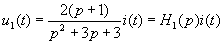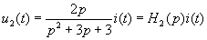 故得u1(t)对i(t),u2(t)对i(t)的传输算子分别为 | |||