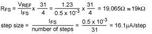 寄存器设置相应的裕量百分比要求时,可能还有其它因素。任何情况下,选择理想的满量程电流都需要反复测试确定,进而计算出RTOP、RBOTTOM、