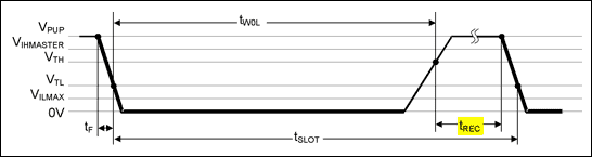 本应用笔记阐述了如何设置写0时隙中的tREC以及派生值tSLOT,以确保多从机1-Wire网络中有足够的电源。如果得出的数值还被用于读数据时隙和写1时隙,那么tSLOT决定了在特定1-Wire网络中实现可靠通信所需的最大数据速率。