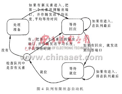 由分析交换机的内部运行状态机得知,队列可以使用如图4所示的有限自动机进行描述。