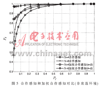 。当单个认知用户有较低的信噪比时,该认知用户的权重将随之减小,从而在认知无线电数据融合中心进行数据融合时,该认知用户对综合判决的影响也减小。