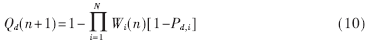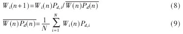 Pd,i是第i个认知用户在第n次感知过程对主用户的检测概率。每个认知用户的权重随感知过程的变化而变化,但是权重之和保持一个恒定值