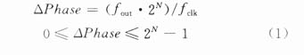 式中,N是相位累加器的字长。由公式(1)知,相位增量值ΔPhase与输出信号频率fout成正比。