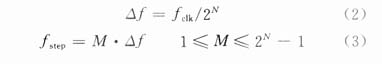 扫频信号源频率分辨率fstep直接取决于DDS的频率分辨率Δf,计算公式如下