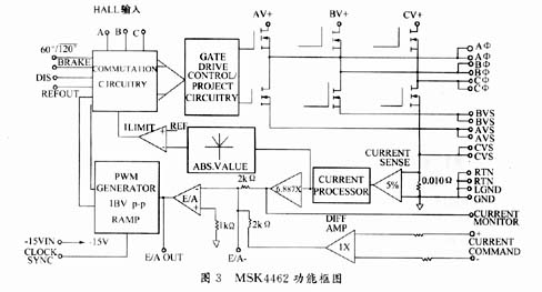 IPM模块MSK4462的功能框图如图3所示。