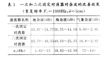 当工作的Fr较高时,改善因子还会有所提高。上述的一次固定对消器和二次固定对消器,对海浪和气象杂波有很大限制。