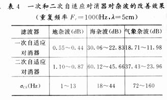 (4)在不同的情况下选择不同的对消方式,在观测地杂波很强的回波时可采用二次固定对消器;在海杂波和气象杂波较强时,可采用一次固定对消器加二次自适应对消方式,在对消效果不理想时还可以通过自动调整自适应对消器的权系数以获得最佳的效果。