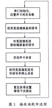 接收端采样频率为22.05kHz,将信号接收后存成wav文件(在接收数据前加wav头文件),利用MATLAB命令wavread读取,得到数据文件,收端处理流程如图3所示。