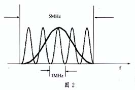 通信。它能根据数据传输速率动态调整跳频带宽,当传输速率较低(<2Mb/s)时,采用1MHz的带宽,当速率为10Mb/s时,则用5MHz的带宽进行通信,如图2所示。