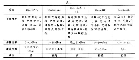 总的来讲,IEEE802.11比较适于商业环境下的无线网络,蓝牙技术适合于移动设备之间的互连,而HomeRF则适合家居环境中的通信。表1比较了这几种技术的特点。