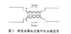 射频干扰,严重时有可能会造成电路板瘫痪。因此,设计者必须采取措施予以防范:除了保证布线合理外,选择有效的滤波元件也是重要的一方面。磁模块的共模扼流器部分可以有效地减少共模信号引起的射频干扰。如图3所示:共模电流以相同的方向流过共模扼流圈绕组的每一边,建立大小相等相位相同的相加磁场使共模扼流圈对共模信号呈现高阻抗,通过共模扼流圈的共模电流大大地减弱。磁模块主要的