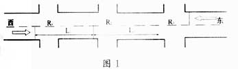 如图1所示,某辆车在干道上由西向东行驶至R1交叉口,当R1交叉口干道方向信号灯为绿时,该车通过R1交叉口,经过一定的时间到达R2交叉口。如果R2交叉口干道方向信号灯也为绿通行状态时,该车将无须停留就可继续通过R2交叉口,再经过一段时间后到达R3交叉口。如果该干道无论对由西向东还是由东向西行驶的车辆来说,在各个交叉口都不需停留就可连续通过,则该干道就实现了“绿波”信号控制或绿波带。这只是一种理想状态,实际应用中将受到多种因素的制约。本文只就车速、相邻交叉口间距离和信号周期几个方面来建立实现干道双向绿波信号控制的相关公式。