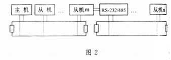 控制系统中,控制主机与各终端之间需相互传输的数据量很小,而且传输速率要求也不高,投资少。因此,对那些还未建立光纤网的城市或距离光纤网比较远的干道,采用RS-485总线式的结构也是一种解决方法。