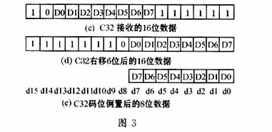 C32接收数据时,先读取接收数据寄存器,再进行移位、码位倒置处理。其操作步骤如下: