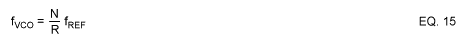 For example, if P = 32, M = 31, and A = 8, using EQ. 14, N counter is calculated to 1000. If the reference oscillator frequency is 20MHz and the R counter is set for 20, using EQ. 15, the VCO frequency is locked at 1000MHz.
