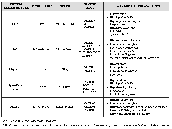 In summary, Table 2 recaps the major ADC types available today. To order Maxim product samples for your evaluation, use the Business Reply Card in this issue.