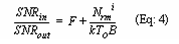 如果干扰信号的频率偏离信号频率很远,可假定相位噪声是平坦的。这两个噪声源不相关[4],并且可以叠加,如图3所示。存在阻塞时,输入与输出信噪比的衰减可以表示为: