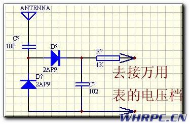 首先先调试1971的前面部分,将1417的11脚天线去掉,焊接上C31的电容把这个场强仪的输入端(即天线)用金属夹子夹在1971的基极,依次调试L1,C04,使万用表的显示最大,再依次调试C03,C02,L6,同样是使万用表的显示最大,结束后将那个没有焊接的电感焊接上去。注意,在调试1971部分的时候将电源电压降低为8-9V,同时一定要接上50欧姆的天线,建议使用GP天线。