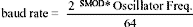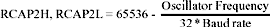 After establishing the timer's mode of operation, the reload value must be stored in the reload register. The contents of the reload registers may be calculated for a desired baud rate and oscillator frequency using the following equation: