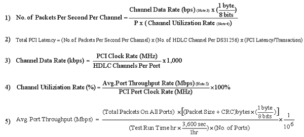 有关PCI总线利用率的实验室测量结果展示了DS31256的PCI总线使用情况。其中假定所有收到的和发出的数据包都为56字节长(P = 56)。结果归纳于表5。我们还制作了一个可以计算总线利用率的速算表(如表6所示),如果需要可以索要(请联络