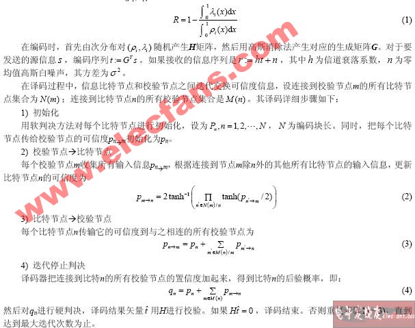 假设LDPC码的次分布对为(,)iiρλ,则LDPC的码率[5]: