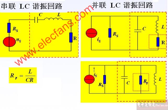 下面分别是并联LC谐振回路电路和串联LC谐振回路电路