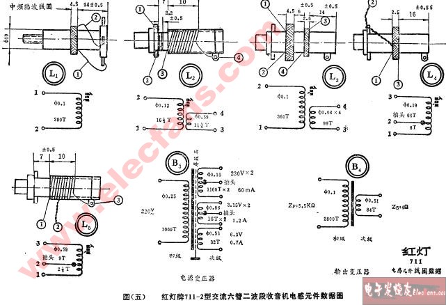 红灯牌711系列交流六管二波段收音机电感元件数据图