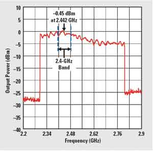 确定天线带宽的两种常见方法是:1)在相关频带上调节载波的同时对辐射功率进行测量;2)使用网络分析仪对天线馈电点的反射进行测量。图4显示了第一种方法,其对一个2.4GHz 天线的辐射功率进行测量,这种天线在 2.4GHz频带上具有接近2dB的输出功率变化,同时还具有接近于这一频带中心的最大辐射。这种测量方法是通过对2.3~2.8GHz的连续波信号进行调节来完成的。这类方法应该在一个无回音室中进行,以获得正确的绝对带宽级别。然而,即使在没有无回音室的情况下,这种方法也非常有用。