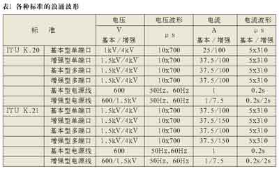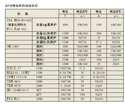 为了设计出最合适的VoIP保护解决方案,了解保护器的各种浪涌等级和保护电压就很重要。常见浪涌电压电平如表1所示