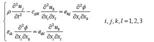 式中 uj为质点位移矢量;cijkl为弹性劲度系数张量;ekij为压电系数张量;εik为介电系数。