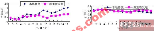图1仿真结果表明,在采用本地修复后数据的延迟在节点移动性较小时比源重新发起方式小,但随移动性增加而增大,并逐渐劣于后者。因为采用源重新发起方式时,断路后数据包就被丢弃了;采用本地修复后,当出现断路时数据包会被存储在节点的缓冲区中,等待链路修复后继续完成传送。经比较,采用本地修复可以获得更低的数据分组丢失率。