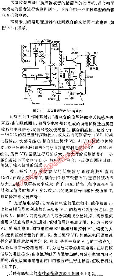 晶体管两管收音机电路图