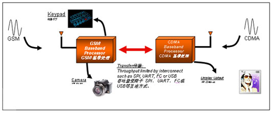 近期推出的单芯片解决方案包括了GSM和CDMA的选定频带,这是一项令人感兴趣的新发展。在这种解决方案中,由于要在单芯片上集成所有必需的功能,通常会在特性与性能上进行取舍。这种处理器比较新,还没有完全经过市场的检验。大多数制造商仍然希望采用业经验证的解决方案,通常不希望在性能要求方面折衷。因此,从提高网络传输速率以及满足特性要求方面来说,双处理器架构是较理想的选择。