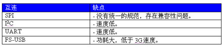 比较流行的一种互连技术是采用通用串行总线 (USB)接口。大多数处理器都具备全速USB(FS-USB)性能。FS-USB的最大数据传输速率为12Mbps,由于USB协议本身的数据包开销较高,因此其实际吞吐量约为 6Mbps。此外,大多数基带处理器不具备 USB主机功能,而这对 USB 解决方案来说又是必需的。因此,我们必须内置额外的 USB主机功能。USB连接技术不但不能满足目前HSPA手机的数据传输速率要求外,而且还会增加功耗,这是因为USB主机即便在不传输数据时也始终保持工作状态。此外,基带处理器上可用的USB 端口数量通常也受限制,因为USB也是手机连接到PC的实际标准。