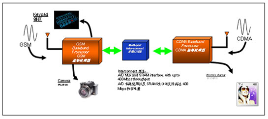 采用多端口互连技术的最明显优势就在于速度高。双端口存储器的存取时间仅为 40ns,能支持高达 400Mbps的数据传输速度,这不仅足以满足目前HSPA手机要求,而且还为今后吞吐量需求的进一步提升奠定了坚实的基础(比方说 LTE 标准)。随着手机技术日益复杂,处理器间传输的数据量肯定会不断加大。利用多端口互连技术,手机设计人员将不再被处理期间通信瓶颈的问题所困扰。