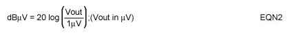 标准定义中,dBµV是以1µVrms为参考,输出电压(Vout)以µVrms为单位进行测量(EQN2)。由于EQN2得到的是电压比值,以1µVpp为参考时它还可以用µVpp为单位测量;或者用其它的电压单位来表示,只要它们采用的单位相同。