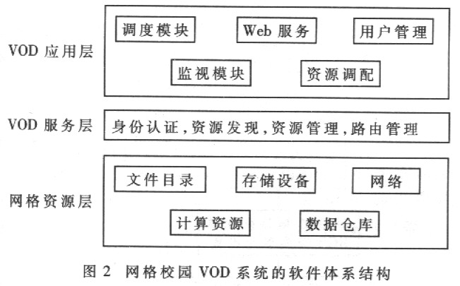 网格VOD系统的软件体系结构主要由三个层次构成,如图2所示。