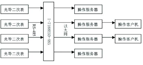 串行通讯(无论是RS-232还是RS-485)只是点对点的通讯,因此可以将4台光导液位二次表接入一台操作服务器上,另三台操作客户机从操作服务器取数据。这样就能满足上述要求,如图1所示。