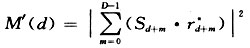 精确的符号同步通常是基于时域或频域的相关运算实现。Warner和Bingham利用了导频信号在频域内的相关特性,Couasnon则利用了循环前缀所包含的冗余信息。考虑突发数据与DVB等广播数据的不同,这里采用短训练序列具有尖锐的自相关峰值的特性,利用接收信号和本地训练序列信号的尖锐相关峰值来实现精确的符号同步。式中,Sd为本地的短训练序列复信号,rd为接收到的基带复信号。根据M′(d)的值来完成对符号的精确同步。