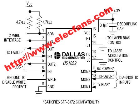 DS1859双路、温控、非易失(NV)电阻具有3个监视器,包含两个50kΩ或两个20kΩ、256级、线性可变电阻,三个