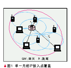 很明显,这里的单一覆盖,没有对给定频段进行复用,支持的终端数少,多用户能力不高。发射信号功率要求大,支持用户数又不高,是图1所示的单一无线IP接入点覆盖的重要缺陷。