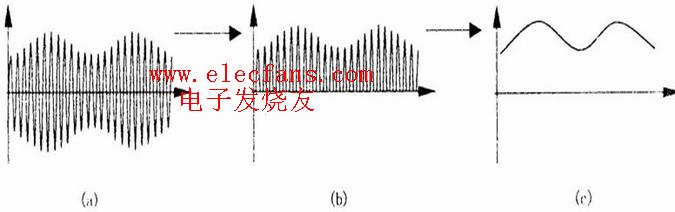 其中L1、C1组成调谐电路,VD与C2组成检波电路,L1与L2组成耦合电路。检波前后的信号波形: