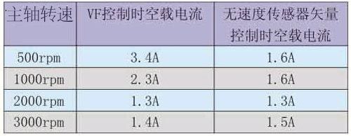 从上表可以看出在恒转矩输出的频率段(0-50Hz),矢量控制的空载电流几乎只有VF控制的一半,负载时电流也比VF小一些;而且负载切削时,VF控制在初期有很明显的速度下降,而且空载速度和负载速度有比较大的差值。而相对于矢量控制,主轴转速初期虽然也会有下降,但是下降值较小,并且速度会很快回升,最终空载速度和负载速度相差不是很明显。经过上面的调试,相比较原来的VF控制,性能有了很大的改善,无论从空载电流,低速力矩,还是速度的变化,效果都是非常明显的,完全能够满足数控机床的需求。